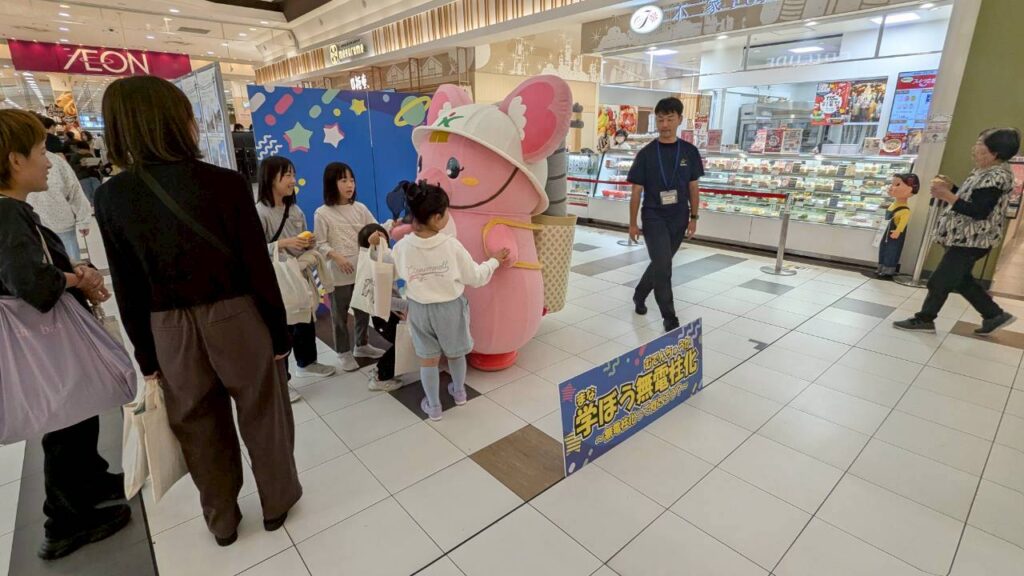 無電柱化啓蒙イベントとしてイオンモール四日市北にて1日間の啓蒙活動を実施される企業様をサポートさせて頂きました。制作物として、ノベルティ・バックパネル・Tシャツ・バックパネル等を担当させて頂きました。また、フォトスポットとしてお子様にも楽しんでもらえるフォトスポットの準備から、お客様持込の着ぐるみのアクターの手配も行わせて頂きました。